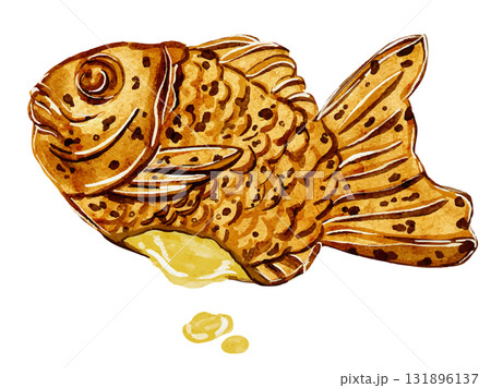 半分に割った、あんことカスタードのたい焼きのイラスト