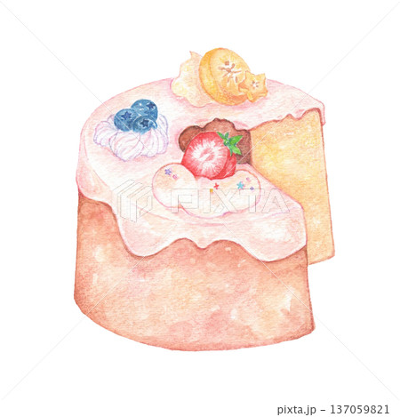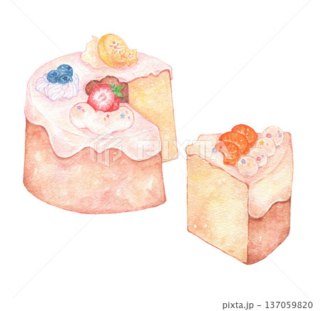 水彩で描いたフルーツシフォンケーキ