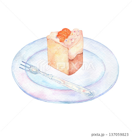 シフォンケーキ 水彩風手描きイラスト