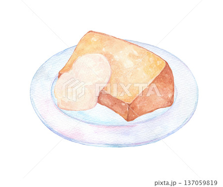 チーズ蒸しケーキの水彩風イラスト