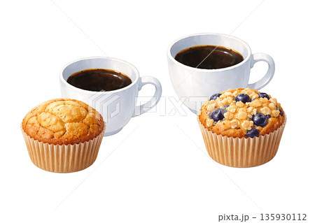 マフィンとコーヒーのカフェスイーツセット イラスト