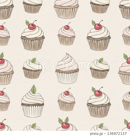 カップケーキ、スイーツ集合、柄