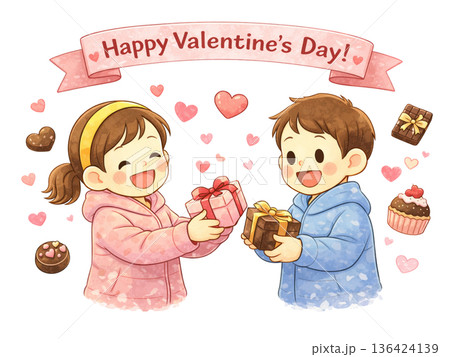 水彩チョコレートとハートモチーフのかわいいイラスト素材