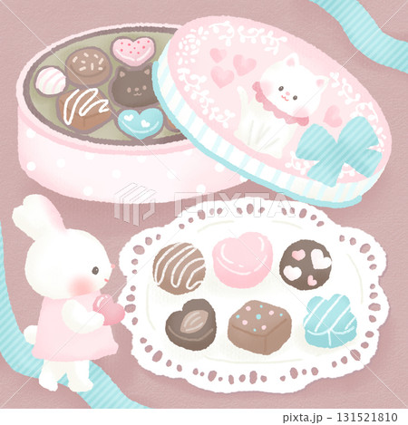 水彩チョコレートとハートモチーフのかわいいイラスト素材