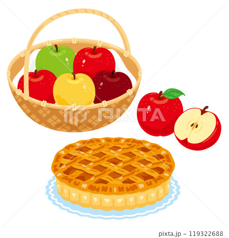 アップルパイとバスケットに入ったカラフルなりんごセット