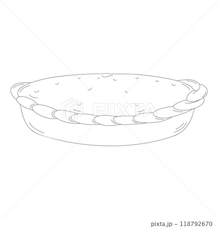 Hand drawn pie. Vector illustration of bakery product. Black and white drawing for menu, packaging and label