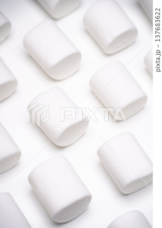 白背景に並ぶマシュマロのパターン配置