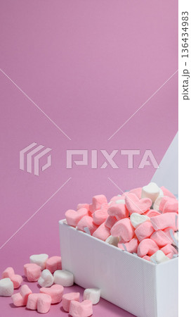 こぼれるカラフルなハートのマシュマロ