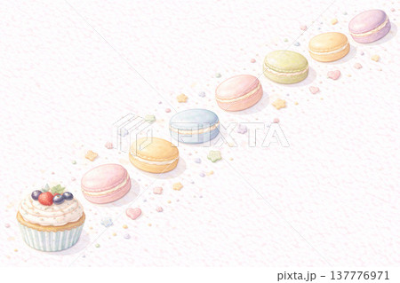 スイーツシリーズ:マカロンが彩る上部装飾背景素材
