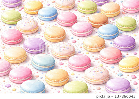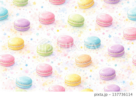 カラフルなマカロンの水彩イラスト背景