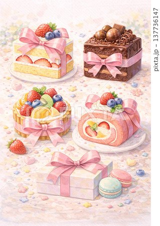 スイーツシリーズ:スイーツとリボンの可愛い装飾