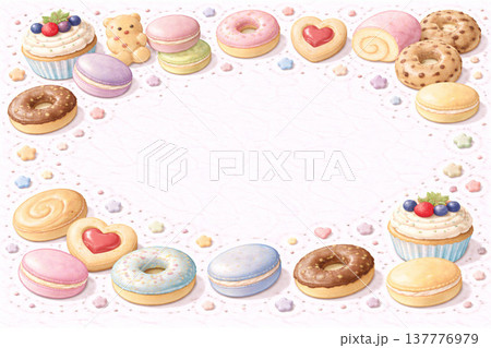 スイーツシリーズ:中央余白を囲むお菓子のフレーム背景