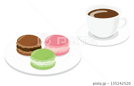 お皿に並んだマカロンとコーヒーのティータイムセット