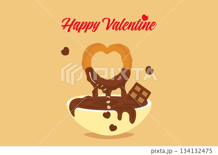 ミルクとチョコレートが入ったチョコレートソースにつけたドーナツのイラスト