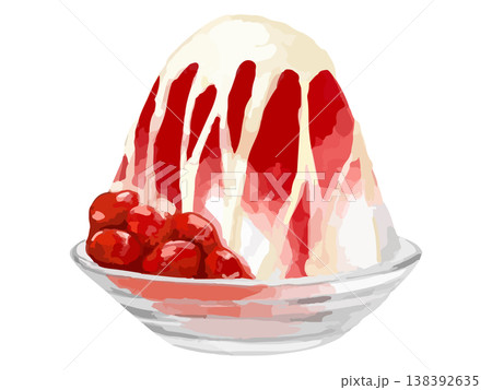 いちごが乗ったクリームのかき氷 色鉛筆タッチのイラスト
