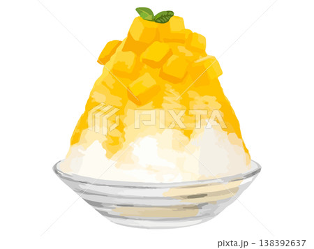 マンゴーシロップがかかった、ふわふわのかき氷1杯