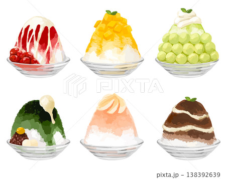 いろいろな味のかき氷のイラスト 氷菓子
