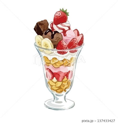 水彩風のパフェのイラスト