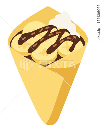 クレープのイラスト素材、バナナチョコレートとイチゴカスタードクリームのクレープ