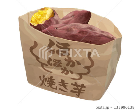 焼き芋の手描き水彩イラスト素材