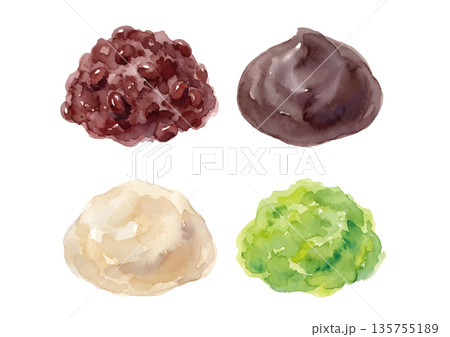 おはぎのイラスト(あんこ・きなこ・青のり・黒ごま)