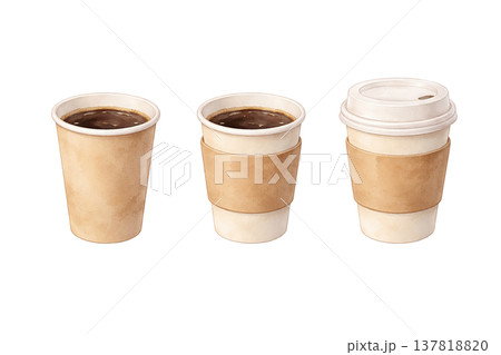 コーヒー 紙カップ シンプル テイクアウト 水彩イラスト素材
