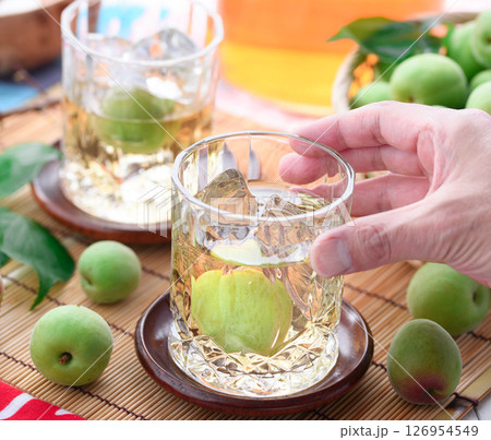 梅酒ロックと青梅の透明感 和モダンな涼風イメージ