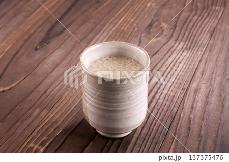 甘酒 温かい甘酒を湯呑みに注ぐ