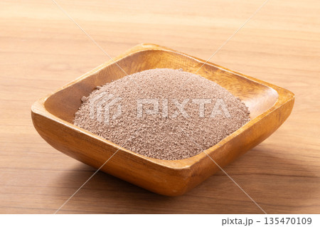 お湯を注ぐ前のフリーズドライ洋風トマトスープ【白背景・切り抜き】