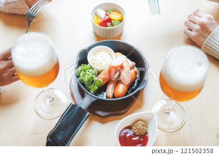 美味しそうなクラフトビールと豪華なおつまみ 撮影協力・月岡ブルワリー