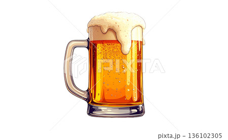 泡がたっぷりの生ビールジョッキのイラスト