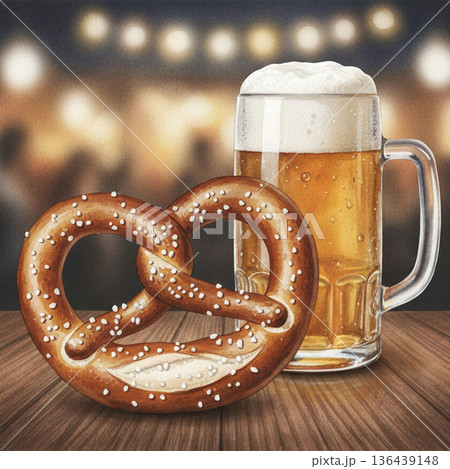 パン・ベーカリーシリーズ:ドイツのプレッツェルとビールのイラスト