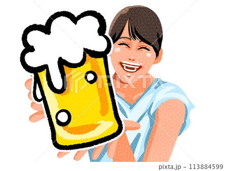ビールで乾杯をするシンプルタッチのイラスト素材