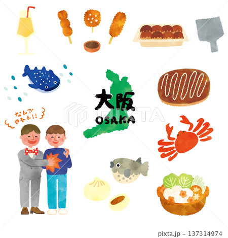 クレヨンタッチ シンプルイラスト 大阪グルメ