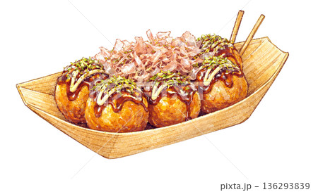 美味しそうなたこ焼きの手描きイラスト