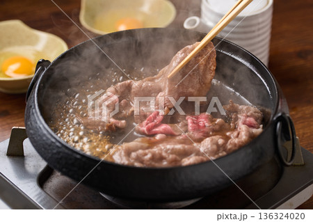 すき焼きを調理する