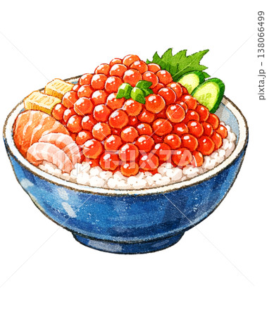 ミックス海鮮丼 イクラ中心 クレヨンイラスト 和食素材