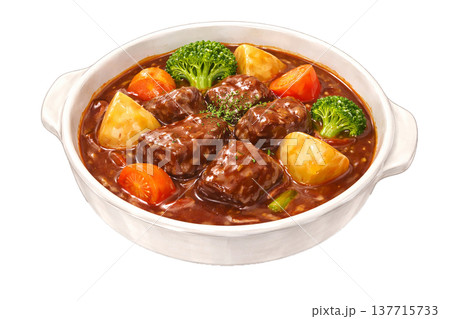 ビーフシチュー 洋食料理 煮込み料理 水彩イラスト