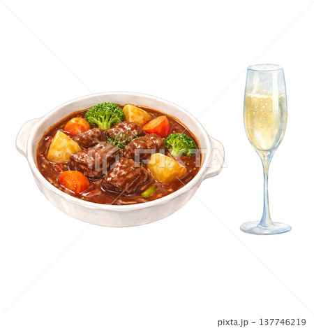 ビーフシチュー 洋食煮込み料理 ドリンク付き 水彩イラスト