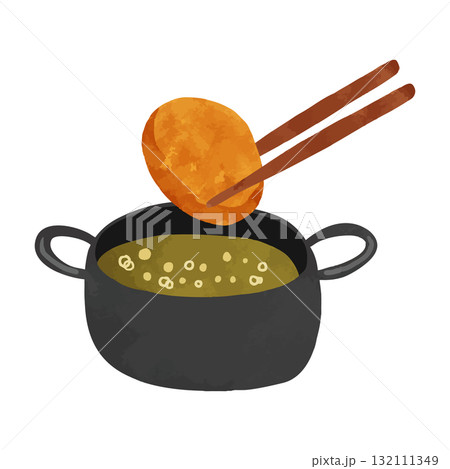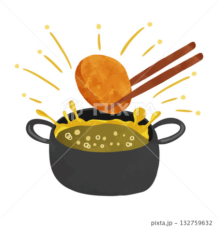 揚げ物鍋とコロッケ 水彩風手描きベクターイラスト