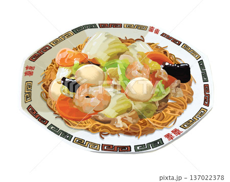 長崎皿うどん水彩画風 / Nagasaki Sara Udon in Watercolor Styl