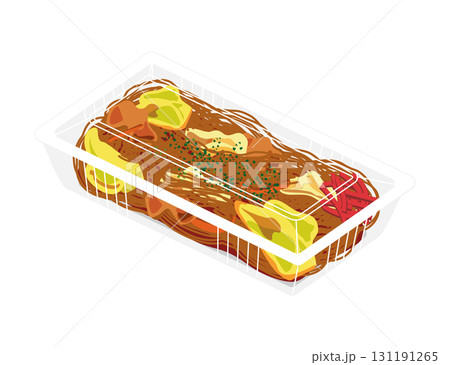 パックに入ったお祭りの焼きそばのイラストセット_右側のみ透過