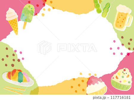 水彩タッチの夏の美味しい食べ物素材 背景あり