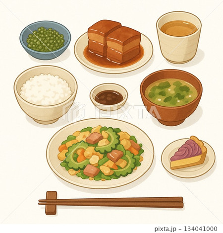 定食のイラスト|沖縄料理 Generative AI