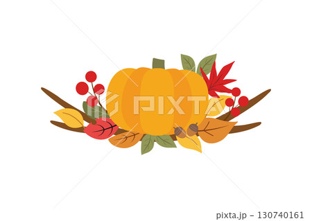 かぼちゃと楓。秋のベクターイラスト