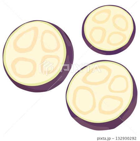 水彩で描いた夏野菜の採れたてナスのカット野菜 イラスト素材