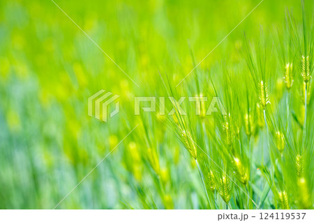 【新緑素材】朝日を受けて輝く青麦【長野県】