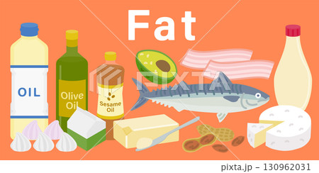 様々な脂質を多く含む食品のイラストセット 日本語
