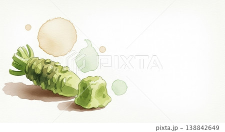 みずみずしく新鮮なわさびの淡い水彩イラスト 柔らかいタッチのナチュラル野菜素材