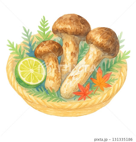 秋の味覚⭐︎ ジューシーな松茸とすだちの水彩イラスト